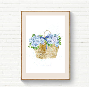 Blue Hydrangea in Tote Basket